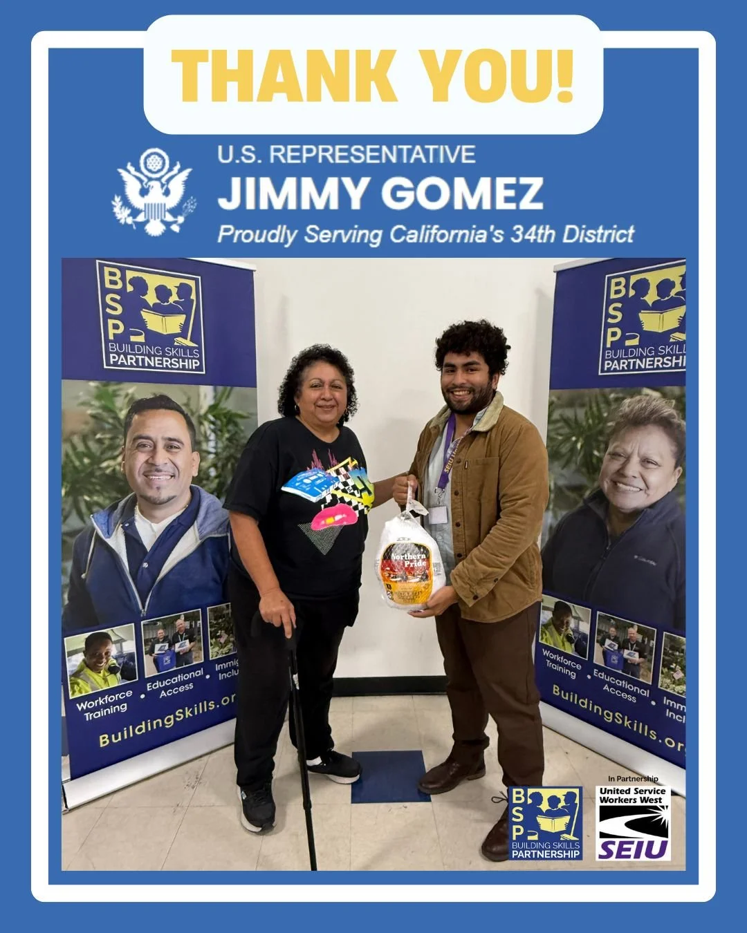 We are deeply grateful to Congressman Jimmy Gomez for generously providing turkeys to support our families this holiday season. His continued commitment to working families and our communities makes a real difference—especially during this time of year when support means so much.